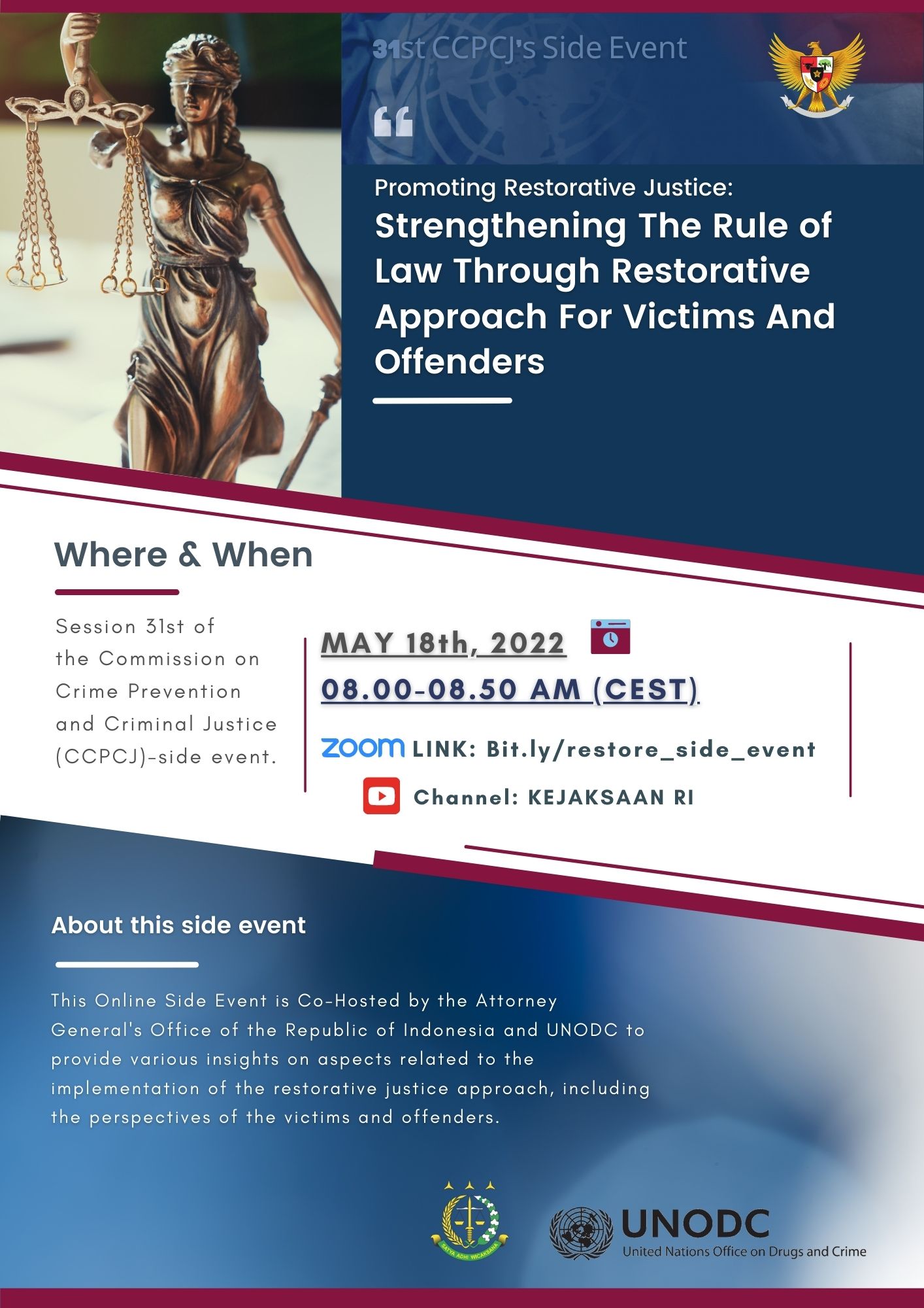 The Attorney General’s Office of the Republic of Indonesia and UNODC Indonesia Office present: The Side Event of the 31st Session of the Commission on Crime Prevention and Criminal Justice (CCPCJ).